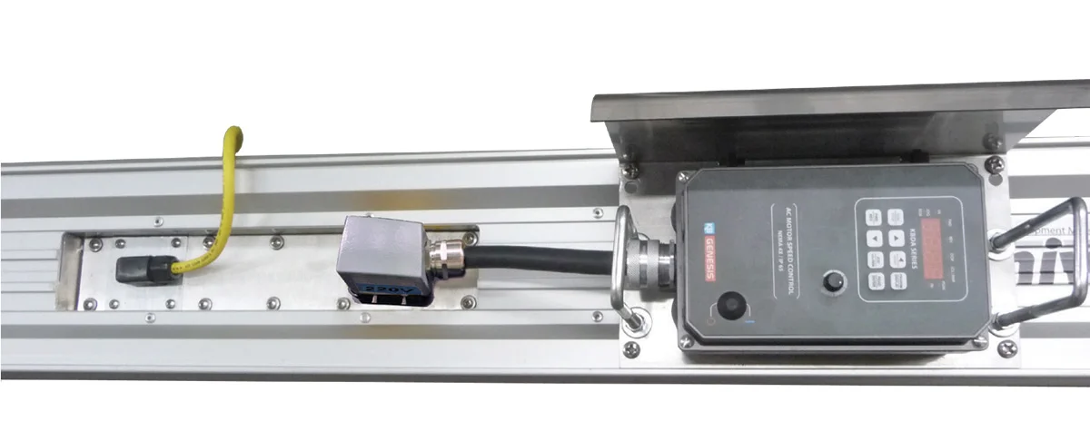 Access Construction Equipment manufactures the portable variable speed conveyor constructed of aircraft grade anodized aluminum sides, stainless steel slider beds on top and bottom, high frequency microwaved PVC belting, hermetically sealed motors, and a high density foam core. The VFD controls are rated Nema 4x/IP65. The combination of strength and versatility makes this stand-alone variable speed mini conveyor unique in the market.